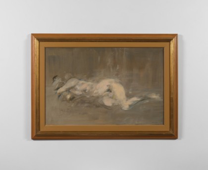 Nudo disteso, 1968Olio su tela, cm. 60 x 92Firmato e datato in basso a destraAutentica dell'artista su fotografia PROVENIENZACollezione Privata
