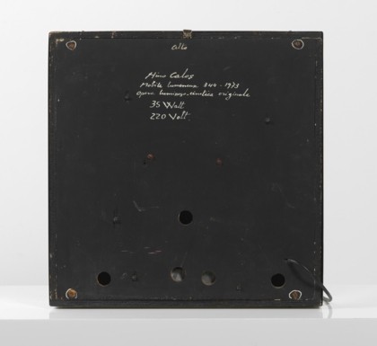 Mobile lumineux 344/1973, 1973Box, legno, plexiglass, acciaio e sistema elettrico luminoso, cm. 42 x 42 x 10Firmato e datato sul retroPROVENIENZACollezione Privata