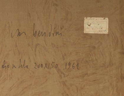 Certificato di archiviazione a cura dell'Archivio Vasco Bendini, n. 1/962 già 517
