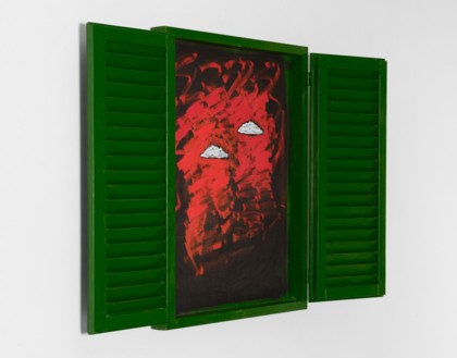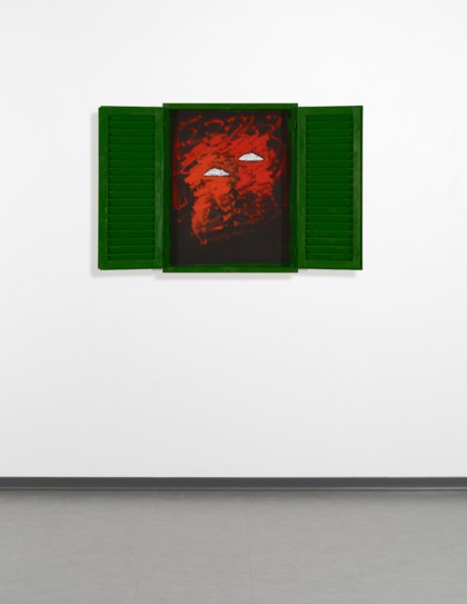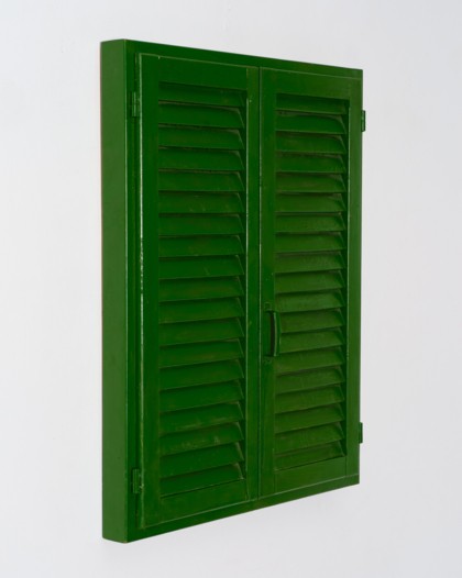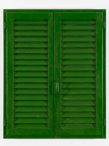 Smalto industriale, tempera, persiana, cardini, telaio in legno, cm 100 x 80 x 9