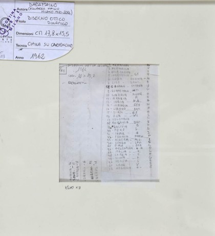 China su cartoncino, cm. 17,8 x 15,5 Firmato e datato sul retro Autentica Flaminio Gualdoni su fotografia con archivio 47/08 PUBBLICAZIONI: " Dadamaino, L'assoluta leggerezza dell'essere ", Cortina Arte Edizioni, p. 33, 2008 Prov. Collezione Privata