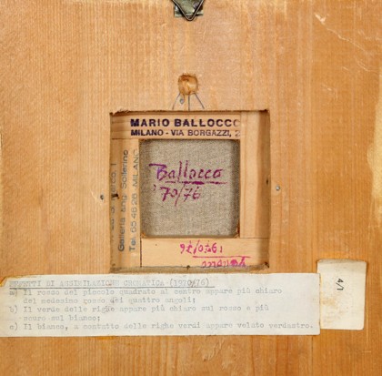 Nasce a Milano nel 1913. Studia all’Accademia di Brera di Milano con Aldo Carpi. Nel 1950 fonda Il Gruppo Origine a cui aderiscono anche A. Burri, G. Capogrossi e E. Colla. Inventore del metodo della cromatologia, Ballocco è un pittore astrattista, capace di for1