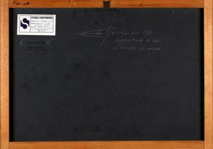 Grammature di colore su lavagna, cm. 54 x 74 Firmato e datato sul retro Etichetta Studio Sant’Andrea Autentica dell’artista su fotografia L’artista ha dichiarato che si tratta di uno tra i primi lavori eseguiti Prov. Collezione Privata