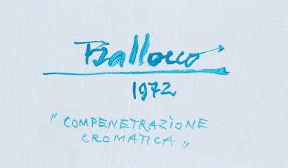 Nasce a Milano nel 1913. Studia all’Accademia di Brera di Milano con Aldo Carpi. Nel 1950 fonda Il Gruppo Origine a cui aderiscono anche A. Burri, G. Capogrossi e E. Colla. Inventore del metodo della cromatologia, Ballocco è un pittore astrattista, capace di for1