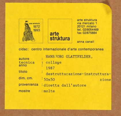 Collage di cartoncini colorati su cartone, cm. 50 x 46 Firmato in basso a destra Etichetta Arte Struktura, Milano sul retro Prov. Collezione Privata