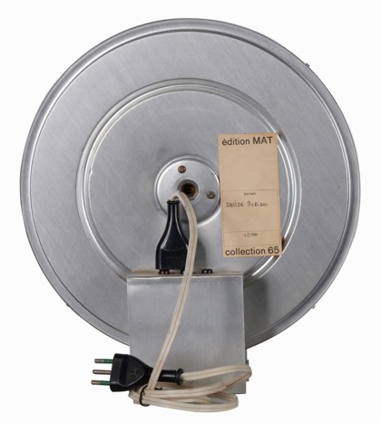 Multiplo, alluminio, vetro, polvere di ferro, magneti permanenti, micromotore, altezza cm. 33,5, diametro cm. 30 Edizione MAT Colonia Firmato sul retro Opera n. 42/100 Etichetta édition MAT, sul retro Prov. Galleria der Spiegel, Colonia Prov. Collezione Privata