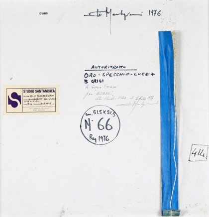 Tecnica mista e led su intonaco, cm. 50 x 50 Firmato e datato sul retro Dedica dell’artista a Grazia Chiesa sul retro Etichetta Studio Santandrea, Milano sul retro Timbro D’Ars, Milano sul retro Prov. Collezione Fondazione D’Ars Oscar Signorini Onlus, Milano