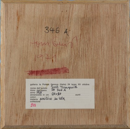 Acrilico su tela applicata su tavola, cm. 20 x 20 Firmato e datato sul retro Timbro Galleria la Polena, Genova sul retro Prov. Collezione Privata