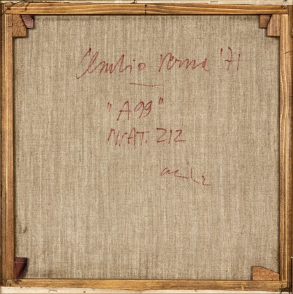 Acrilico su tela, cm. 50 x 50 Firmato e datato sul retro Autentica dell’artista su fotografia PUBBLICAZIONI: “Claudio Verna. Catalogo Ragionato”, Silvana Editoriale, Archivio Verna, Fondazione VAF, 2010, p. 315, n. 212 Prov. Collezione Privata