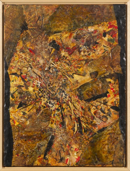 Untitled, 1957Multi-material on board, cm. 61 x 46 Signed lower rightCertificate of provenance Galleria del Naviglio, Milan PROVENANCEGalleria del Naviglio, MilanPrivate collection