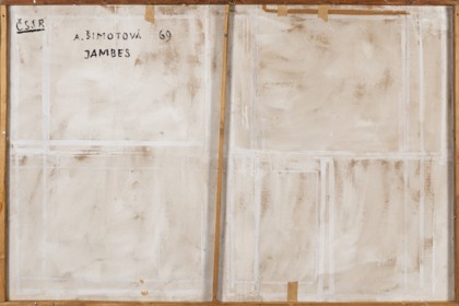 Jambes, 1969Mixed technique on board, cm. 122 x 183 Signed and dated lower rightPROVENANCEPrivate Collection
