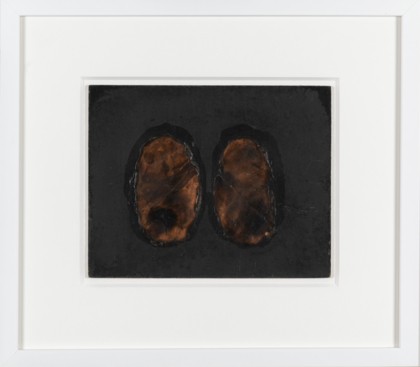 Burnt paper collage on painted board, cm. 19.5 x 25