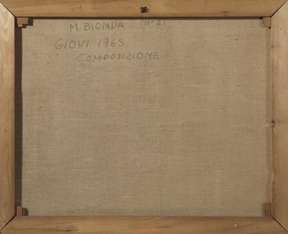 The work is currently undergoing archival authentication by the Archivio Generale delle Opere di Mario Bionda, Milano