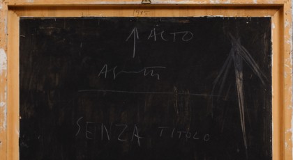 Mixed media on wood, glass and painted frame, cm. 91 x 71