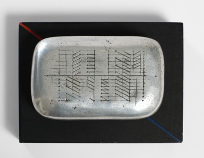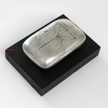 UntitledEngraved stone sculpture on wooden base, cm 9,5 x 24,5 x 18 (stone cm 4 x 19 x 12)SignedP.A.PROVENANCEPrivate collection